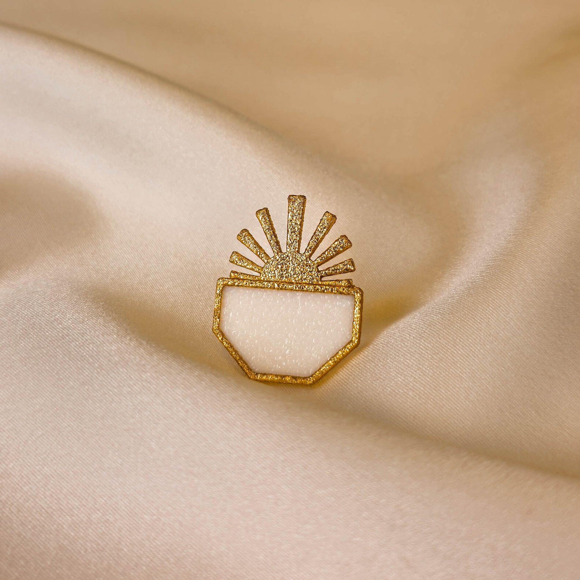 Aurore est une paire de boucles d’oreilles lumineuse et délicate, façonnée à partir de coquille Saint-Jacques revalorisée, puis dorée minutieusement à la feuille d’or 24 carats.